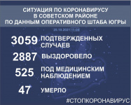 По данным Оперативного штаба Югры в Советском районе по состоянию на 11 ноября 2021 года эпидемиологическая обстановка выглядит следующим образом: